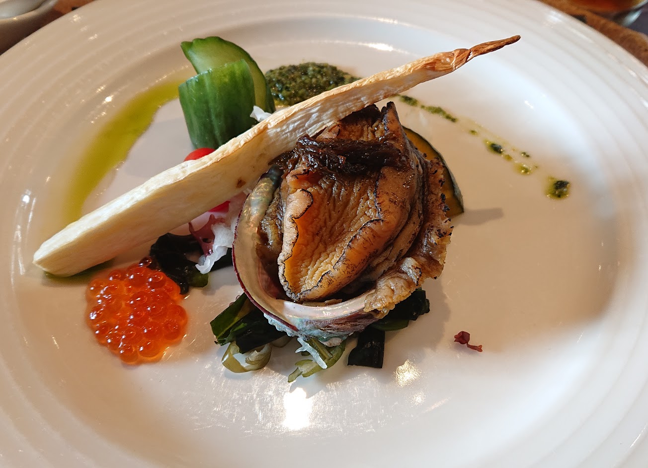 鮑魚配一個很重口味的菜忘記是什麼菜了,完全不搭,配上有腥味的鮭魚卵,第一次吃鮑魚吃得這麼痛苦。