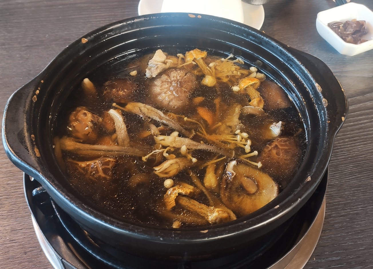 好吃份量多,絕對吃的飽,有加點鮮菇炒水蓮,香氣十足;菇菇鍋湯頭鮮美,養生又健康,今天去遇到一個年紀比較長的服務員,非常親切,五顆星評價,下次再回訪!