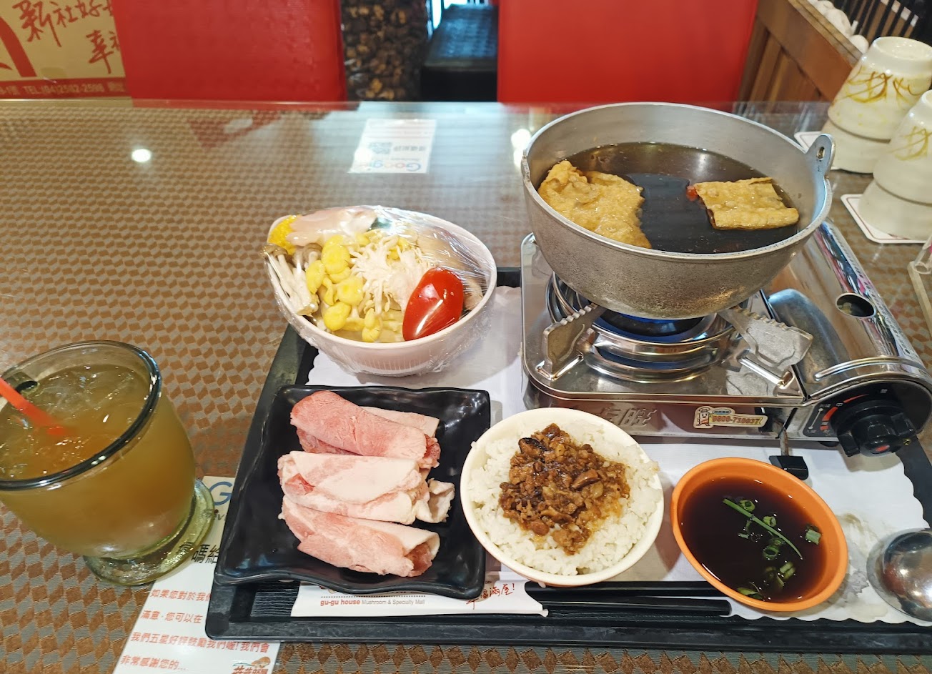 台中新社的菇菇部屋,我們是第一次來此用餐,備有停車場,餐廳環境很舒適,整潔明亮,服務人員面帶微笑,都很親切服務。這次點風味火鍋(雙人)菇菇火鍋,我們選豬肉鍋,搭上金沙松阪豬,以及菇菇香腸,附2碗香菇肉燥飯。火鍋的湯頭,是很香很濃郁的菇菇香味,很溫順養生喔!店家還有飲料可加價69或89元搭選,真的物超所值。趁假日來新社花海遊玩,別忘了來體驗菇菇部屋的美食饗宴。超推的,下次再來遊玩,也會再來品嚐的優良好店。