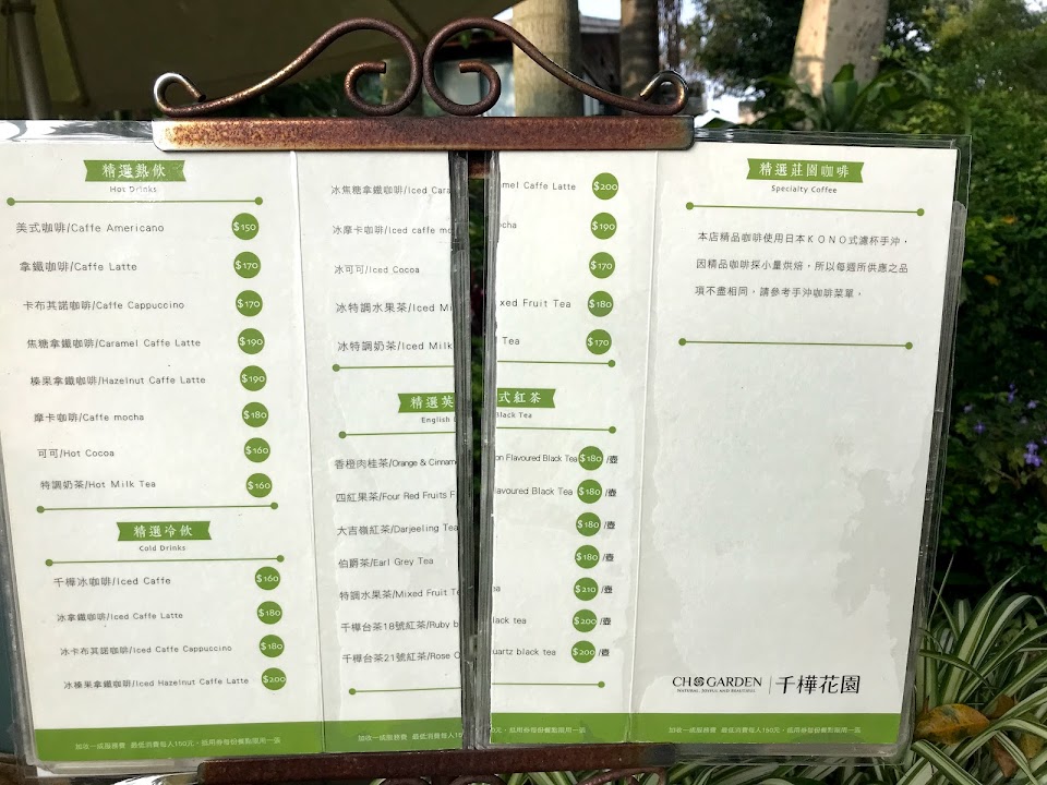 進來時服務人員非常親切的詢問要參觀或是用餐,若只有參觀,每人門票100元,可以折抵餐點或飲料。進到庭院後,即能感受到愜意的氛圍,在花卉盛開的季節,非常適合坐下來喝杯咖啡。