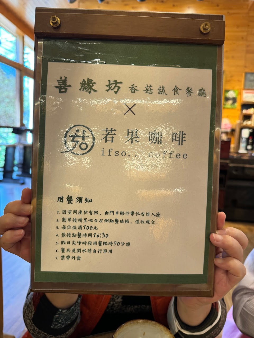 很喜歡有大窗戶的餐廳,藥膳麵湯頭清爽,店裡面有看到沖煮咖啡第四名的獎狀,男友喝了我點的咖啡一口,又跑去點第二杯,店員很友善,旁邊有很多香菇製品的禮盒可以送親朋好友。
