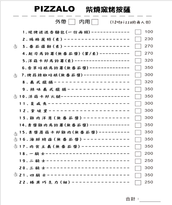 2024最新在地推薦餐廳的菜單_PIZZALO 柴燒窯烤披薩的菜單、圖片
