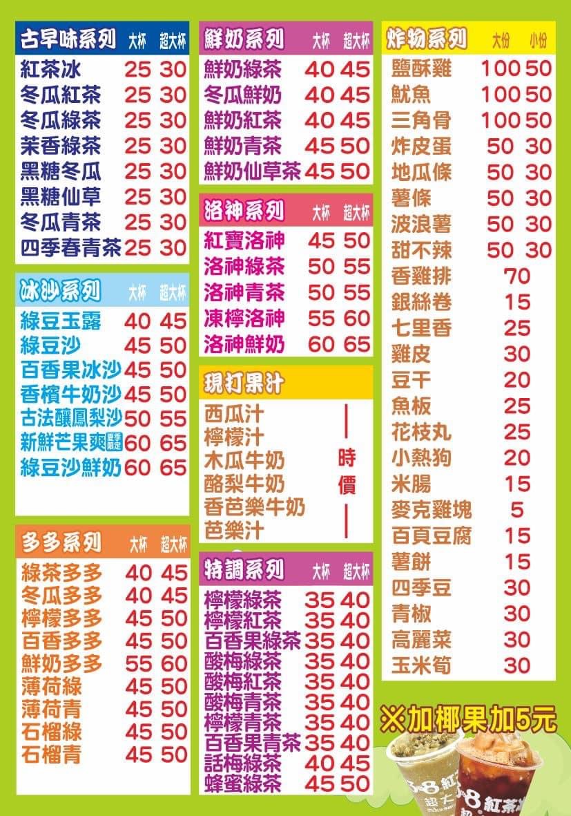 2024最新在地推薦餐廳的菜單_3比8紅茶冰-社寮角店的菜單、圖片