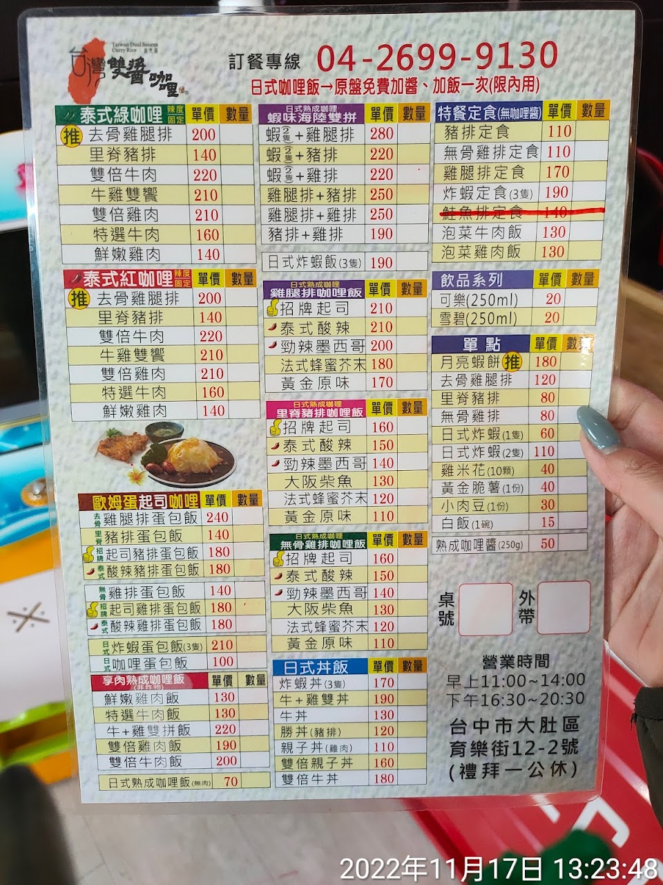 2024最新在地推薦餐廳的菜單_雙醬咖哩(大肚店)的菜單、圖片