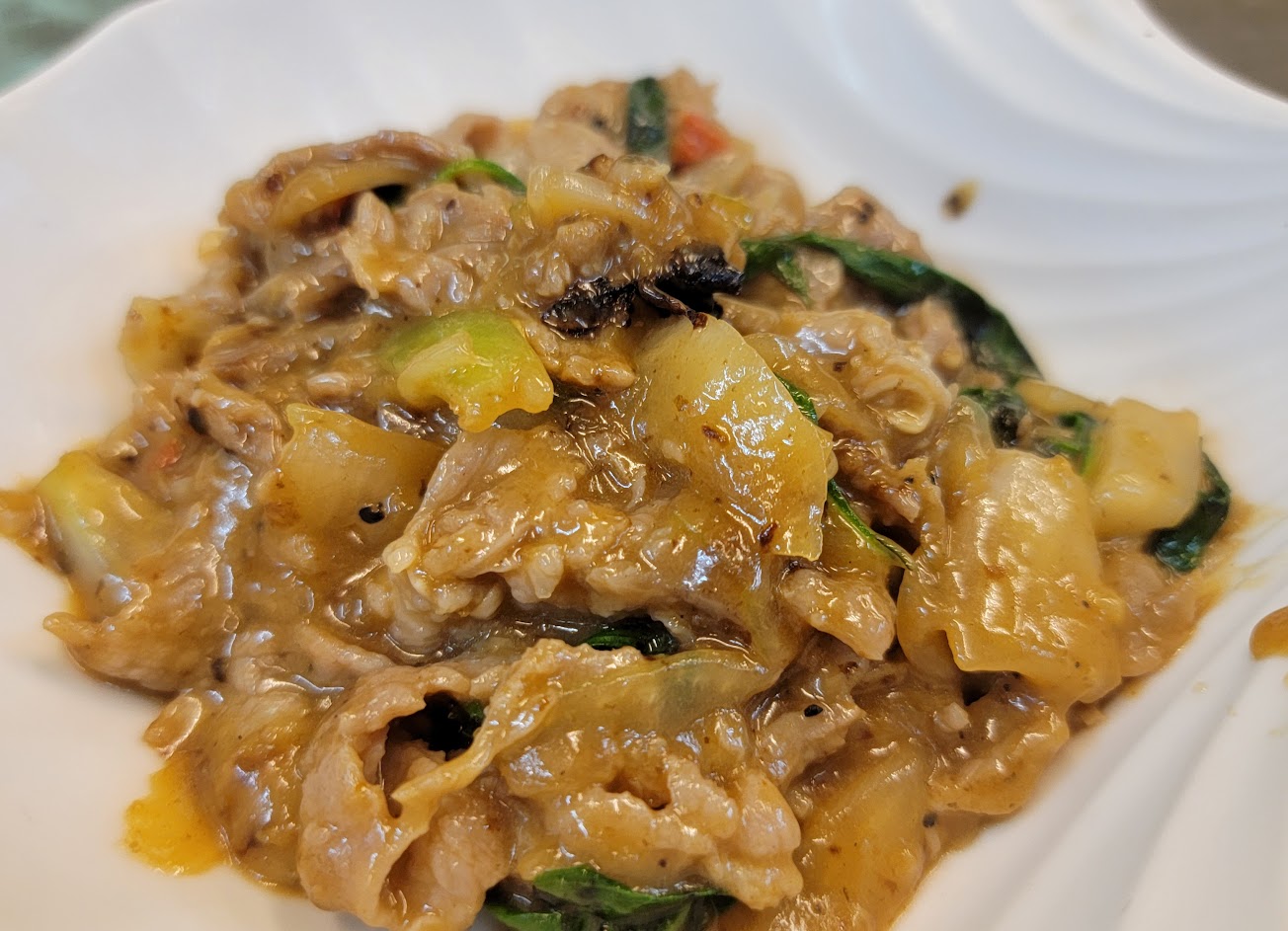基本款的菜量很足,主菜的肉是冷凍肉片炒完會碎掉,算是重口味,很配飯。