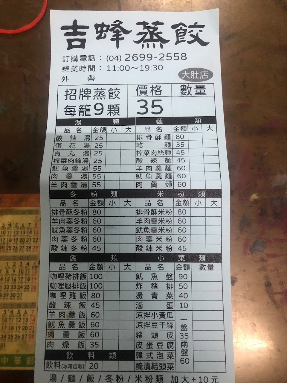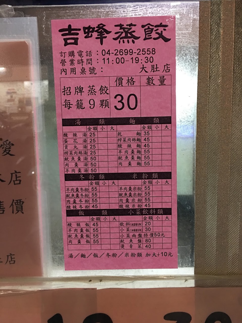 2024最新在地推薦餐廳的菜單_吉蜂蒸餃 大肚店的菜單、圖片
