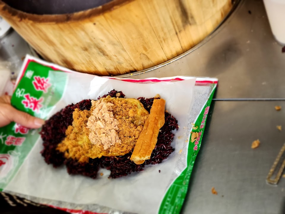 鮪魚蔥蛋飯糰,酸菜味道太重,完全吃不出蔥蛋味,紫米有點硬,要嚼比較久,飯跟料是分開的;整間店的點餐動線很怪,跟等餐的人混在一起,不曉得該往哪排…總之是普通的飯糰,更推薦附近的飯糰霸?