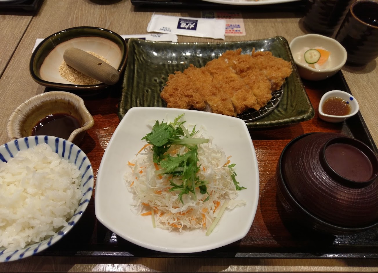 晚餐顛峰時間要等20分鐘,服務人員會主動倒茶水,炸豬排好吃,高麗菜絲、白飯、味增湯可以免費續加喔