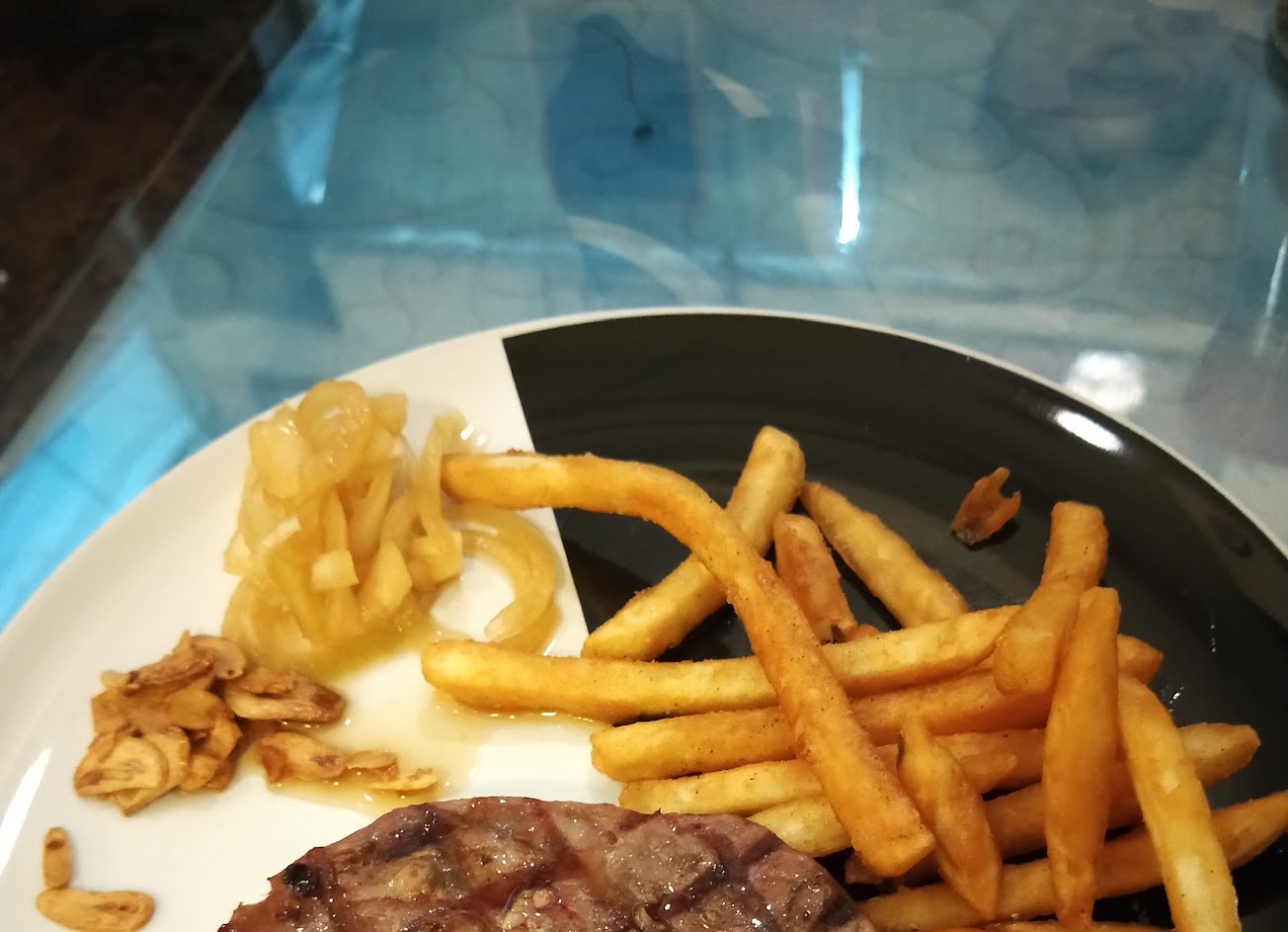 薯條非常好吃,牛排也很棒,洋蔥和蒜片很香,老闆有用心在做料理