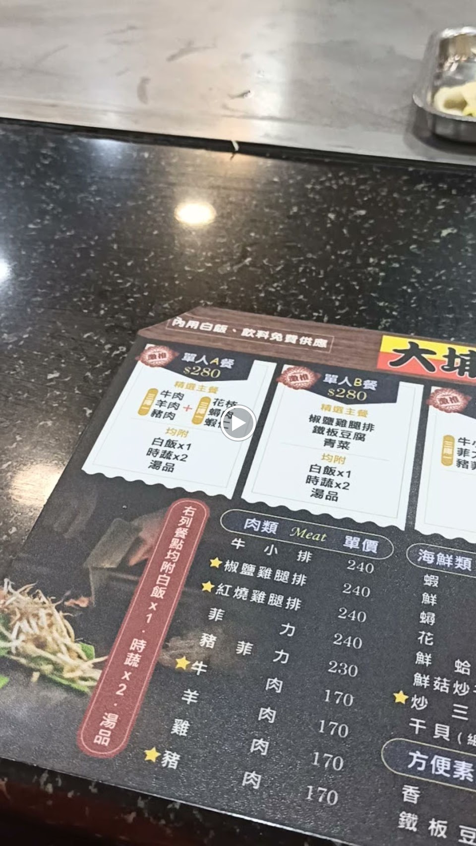 2024最新在地推薦餐廳的菜單_大埔鐵板燒 篤行店的菜單、圖片