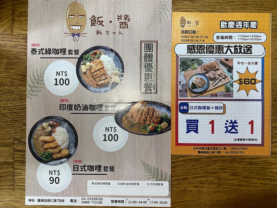 2024最新在地推薦餐廳的菜單_飯醬curry’s&stew(咖哩專賣店) 霧峰店的菜單、圖片