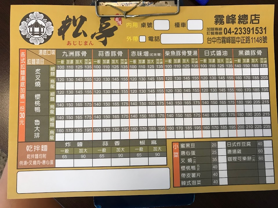 2024最新在地推薦餐廳的菜單_松亭拉麵(霧峰總店)的菜單、圖片