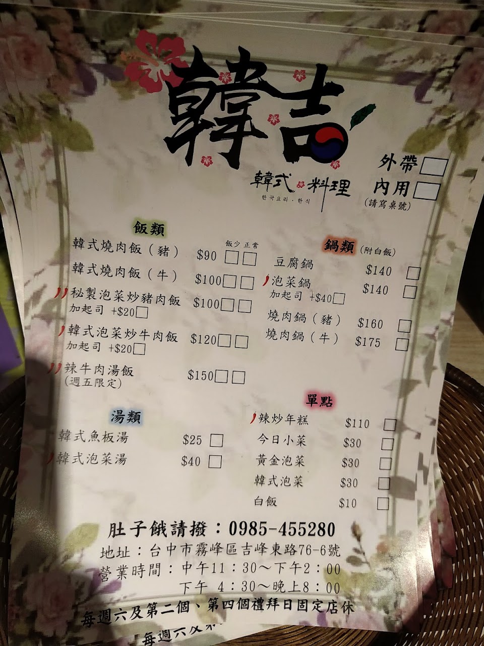 2024最新在地推薦餐廳的菜單_韓吉韓式料理-霧峰店的菜單、圖片