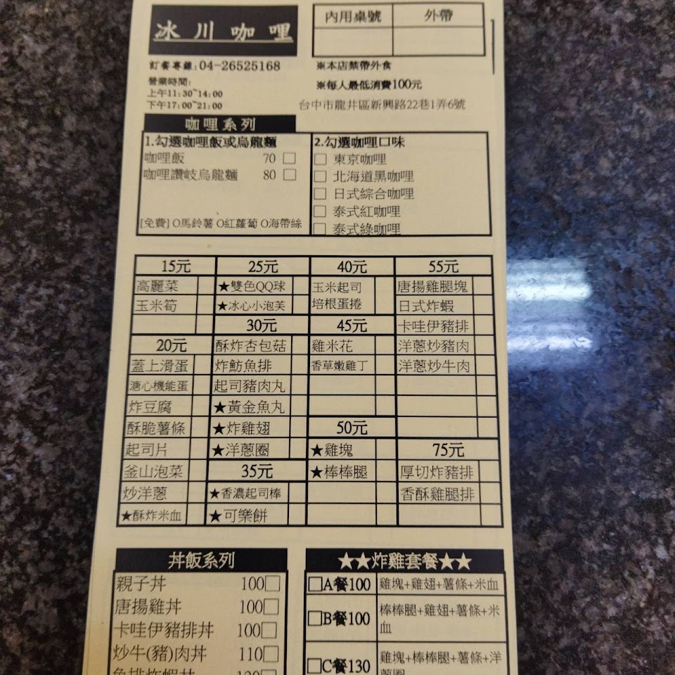 2024最新在地推薦餐廳的菜單_冰川咖哩的菜單、圖片