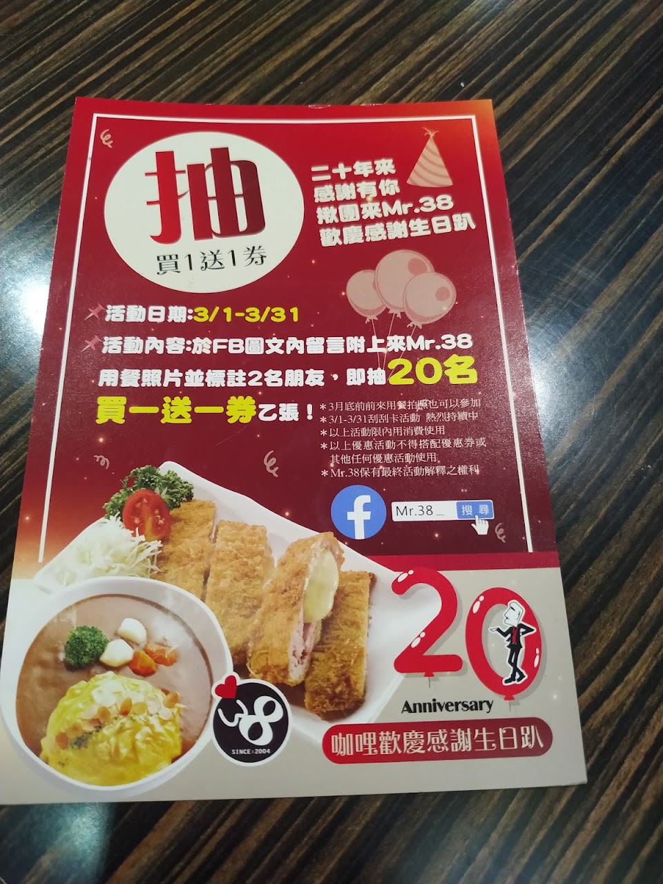 2024最新在地推薦餐廳的菜單_Mr.38 咖哩美食餐廳(東海店)的菜單、圖片