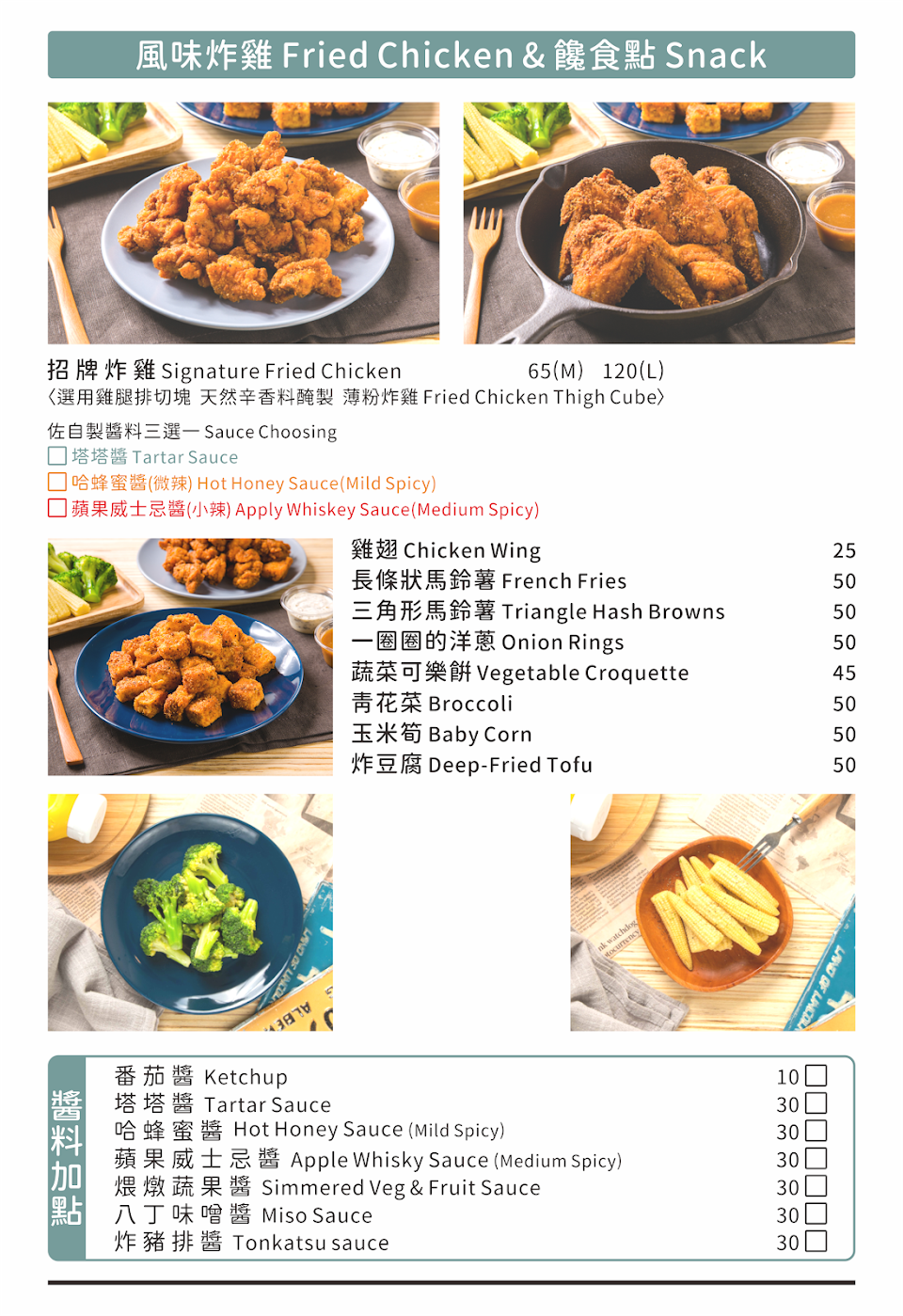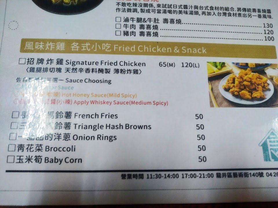 炸物較其他店家油膩,有多種醬料增添炸物風味,但醬料份量偏少且限制單種醬料,店內用餐簡單舒適,但位置不多無法多人用餐。