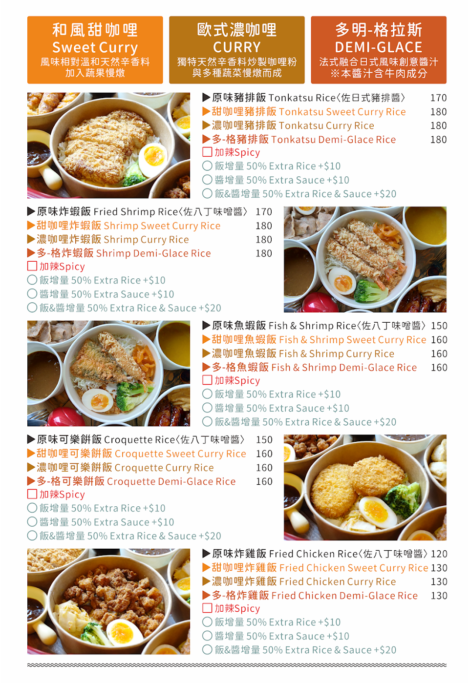 但炸雞、歐式濃咖喱、和風甜咖喱的醬很普通。