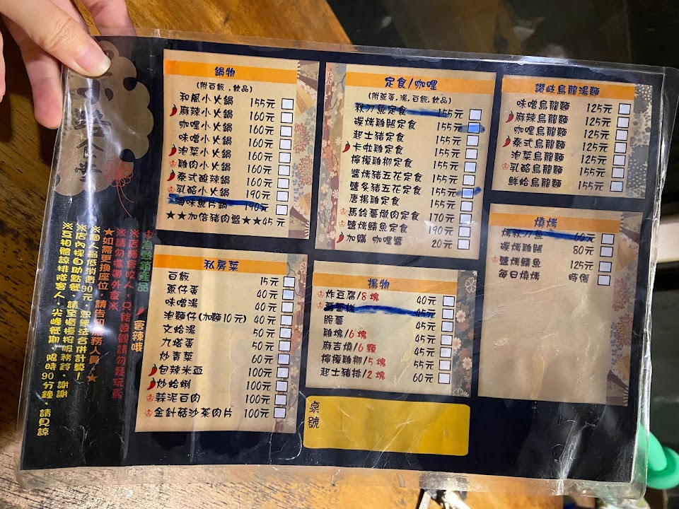 1.等待時間非常久 2.乳酪火鍋完全沒有乳酪的味道,蒜味之濃厚,讓人畏懼..不能接受的人不要點… 3.鯖魚烤得很好吃,推 4.雞排烤到非常柴,難以吞嚥 服務很不錯但是餐點真的需要再加強