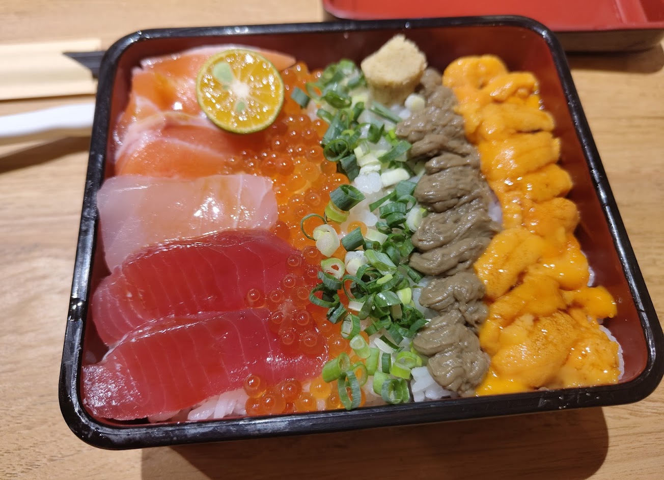 鮭魚生魚片, 散壽司, 生蠔, 鮭魚滿福丼