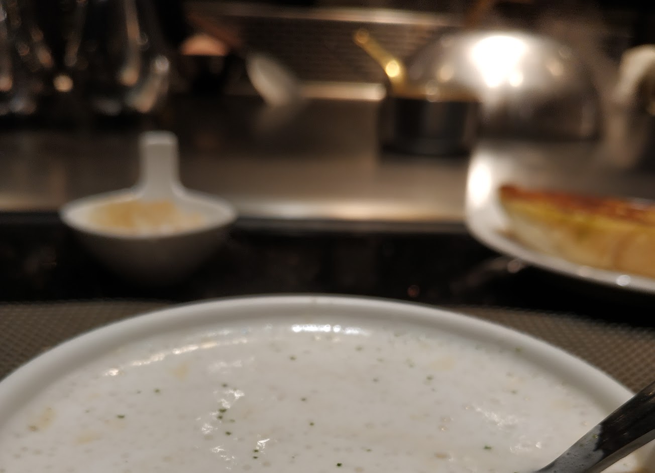第一次在花兩千多吃一客鐵板燒的餐廳,喝水用夜市牛排那種黑色塑膠杯。