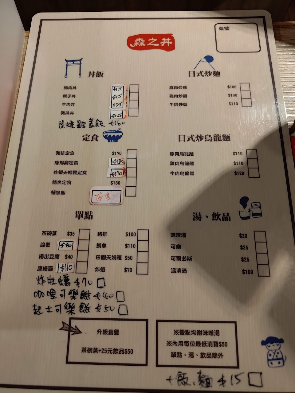 我覺得各樣的炸物都表現的蠻不錯的。豬排飯的豬排偏硬,但是調味不錯,可惜有部分蛋白沒熟。我覺得還是末子的豬排飯更軟更好吃。親子丼味道也是不錯吃,可惜用的不是雞腿肉。茶碗蒸雖然沒什麼料,但是卻又一股很特別的炭燒味道,我覺得超讚!味增湯也是有這個炭燒味,但是用的味增偏甜我覺得有點不搭。日式炒麵大推薦。上面還有擠那個日式美乃滋,我覺得超級大加分。日本美乃滋顏色偏黃,蛋味更香濃,雖然較不甜可是卻和炒麵超搭的。