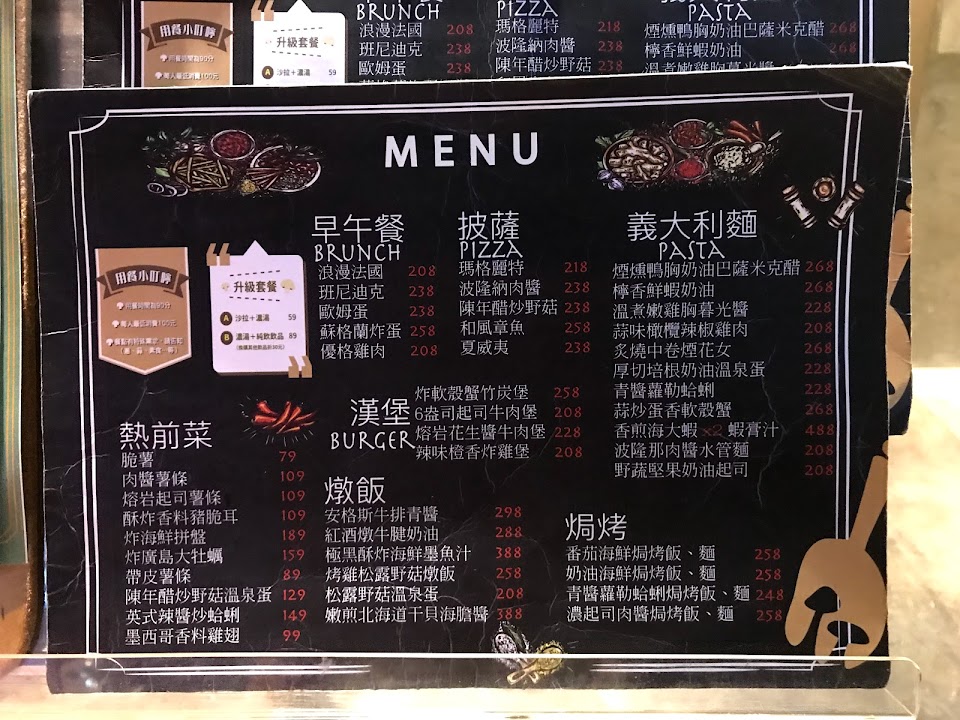 ? 炙燒小章魚墨魚汁燉飯 ➞ $248 ? 美國安格斯牛排青醬燉飯 ➞ $288 ? 蒜辣清炒蛋香酥炸軟殼蟹 ➞ $258 ? 香料烤雞腿野菇奶油燉飯 ➞ $248 ▪️這些燉飯我超愛冷的時候吃?, 是說拍完剛好涼涼的好吃?, 我想說它的香料雞腿醃漬的超好吃!但我忘了拍… ▫️那個青醬&墨魚燉飯好好吃❤️, 蘑菇的飯比較軟,青醬的九層塔味比較重, 淡淡的奶油混著我覺得??,不會太膩~ 墨魚?吃完黑麻麻的XD,而且吃起來鹹鹹沒有腥味, ▪️軟殼蟹不酥,但肉質軟嫩鮮甜,而麵清炒稍微鹹, 牛排沒有過多的筋,但私心調味可以再重一點。 ▫️野菇燉飯讓整個有解膩的效果,而且脆脆的口感也好ㄘ, 因為點太多,我還包回家給我妹吃,我妹很喜歡?~ / ? 提拉米蘇舒芙蕾 ➞ $168 ? 抹茶草莓舒芙蕾 ➞ $188 ? 黑糖珍珠奶茶舒芙蕾 ➞ $168 ▪️很推提拉米蘇口味??,吃起來甜而不膩, 奶油調和的很舒服,薄荷草適度的提香, 舒芙蕾本身是細膩鬆軟的口感,沒有蛋腥味, 讓我非常喜歡♥️! ▫️抹茶吃得出裏頭混入了白巧克力, 讓不喜歡抹茶苦味的人會吃得很放心?。 ▪️是說我意外的很喜歡黑糖奶茶打的奶油, 我一個人把奶油嗑光,雖然滿甜的, 但我就忍不住哈哈哈哈?, 是說珍珠偏軟,所以我覺得還好?~ ▫️整體我認真覺得意外的好吃, 無論是服務or餐點真的比我第一次吃的好太多太多了, 環境寬廣很多,人多的時候不會有壓迫感。