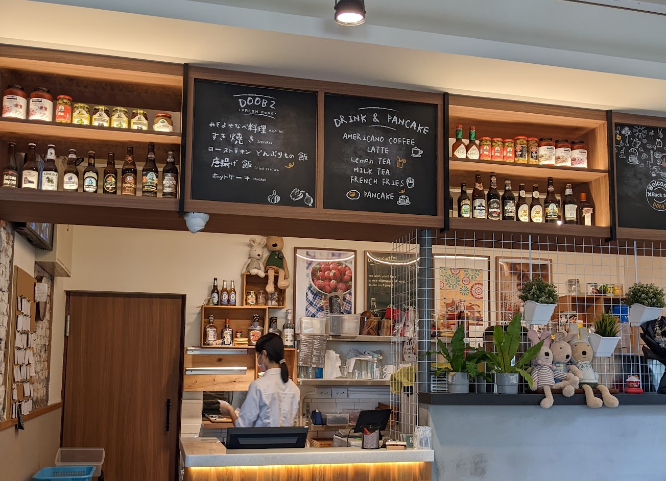 有一個網美打卡角落 但在櫃檯旁邊 現場人有點多有點不太好意思蹲下去拍 店內環境整體裝潢設計風格不錯