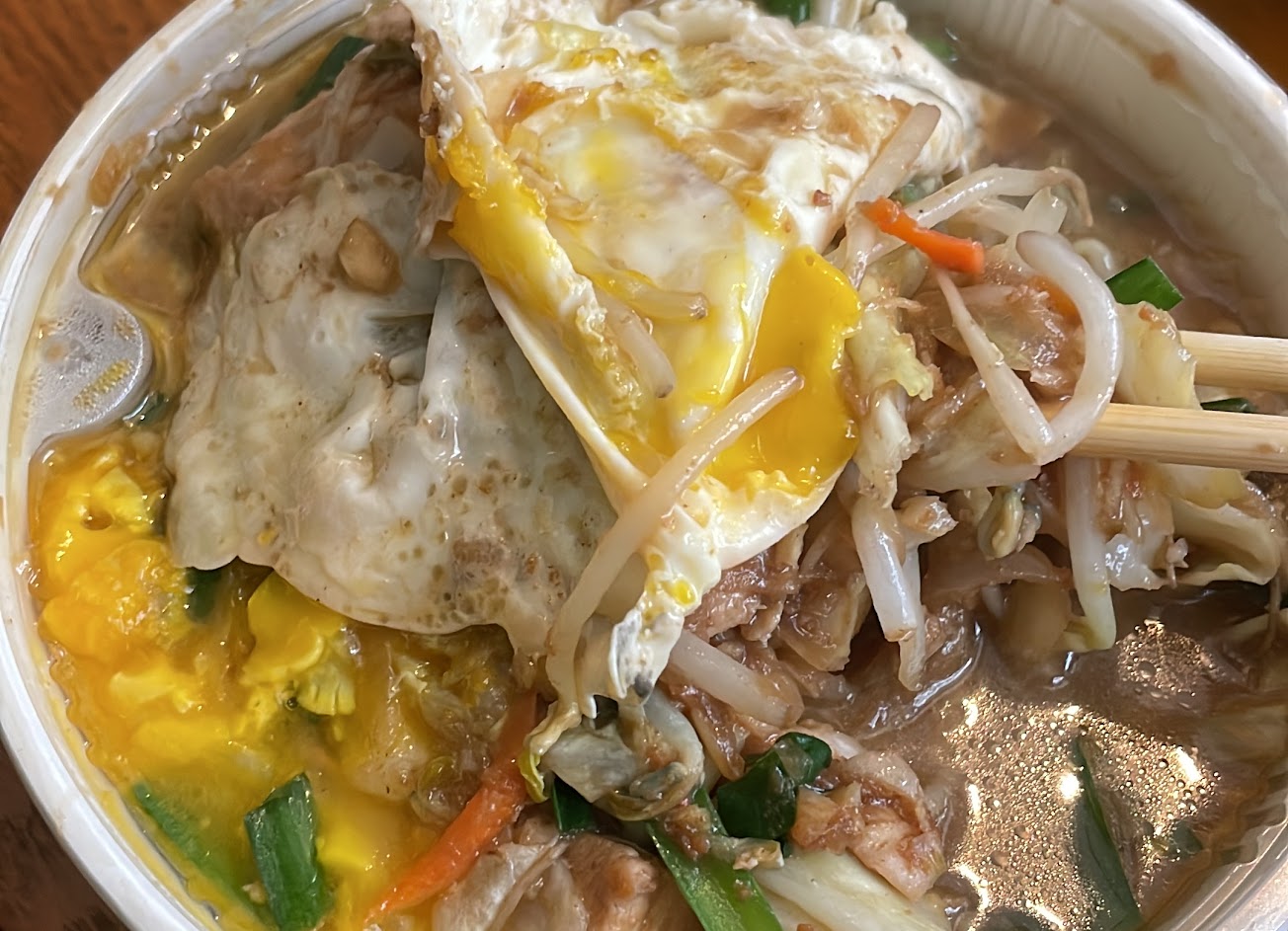 不得不說在這樣的價格前提下,有滿滿的高麗菜豆芽菜,還有多塊的雞肉,口味也不賴,非常值得推薦!