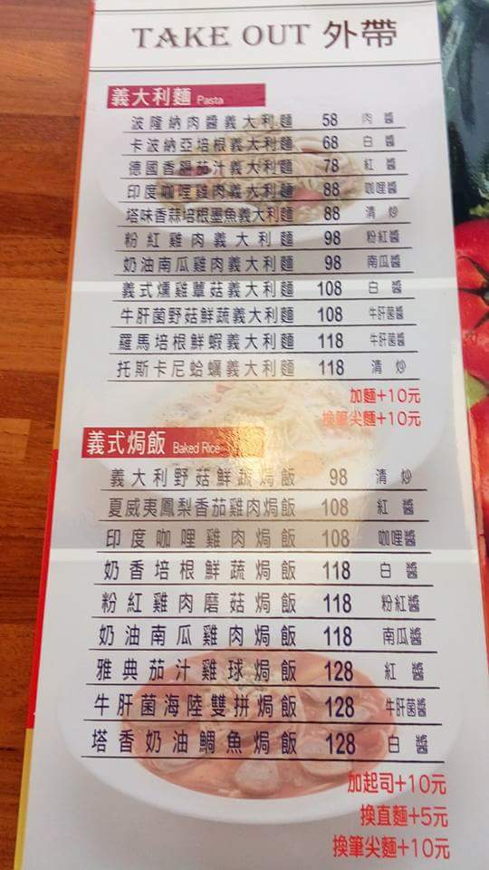 2024最新在地推薦餐廳的菜單_Yes58義大利麵的菜單、圖片