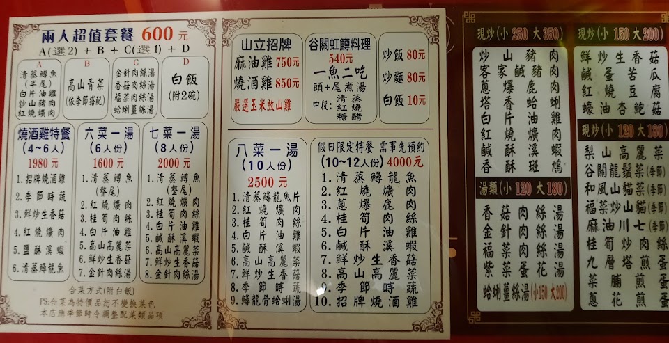 2024最新在地推薦餐廳的菜單_谷關山立小館的菜單、圖片