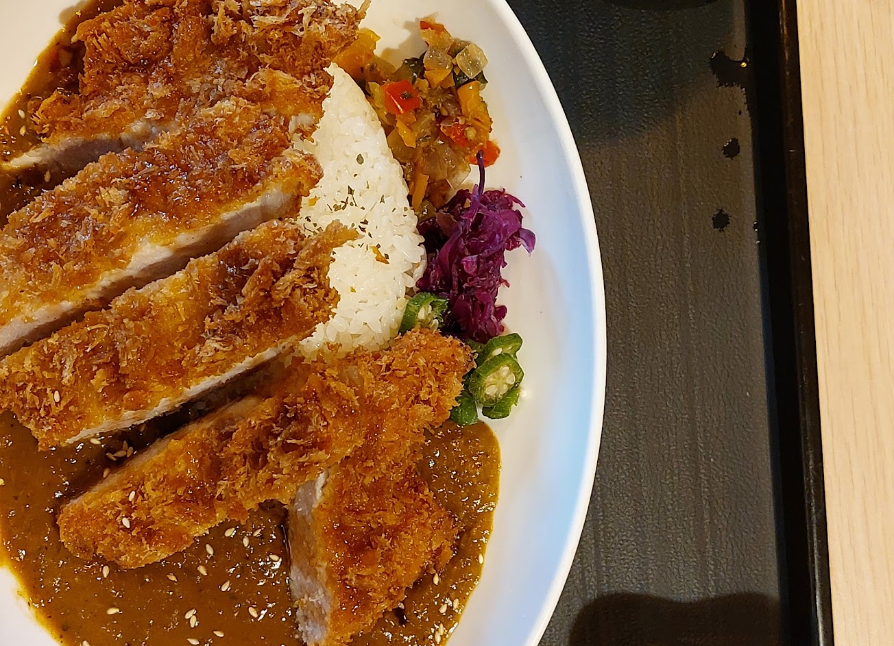 咖哩厚切豬排、唐揚雞,好吃。