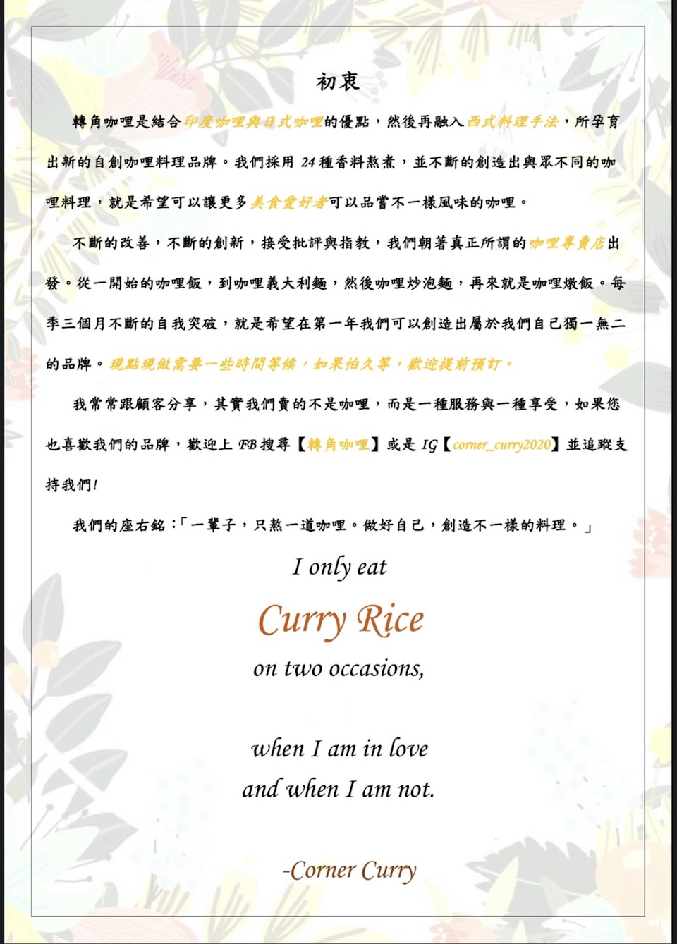2024最新在地推薦餐廳的菜單_轉角咖哩 Corner Curry的菜單、圖片