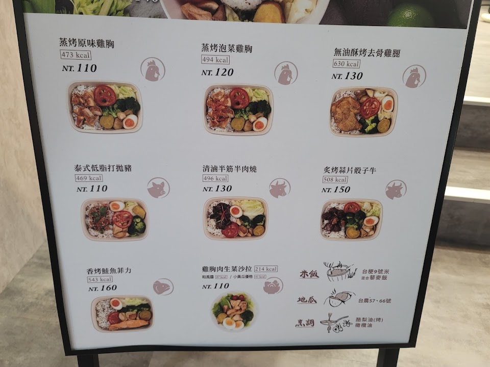 非常穩定的品質,乾淨又健康,推雞腿和鮭魚,店內蒸烤味較重,不適合內用