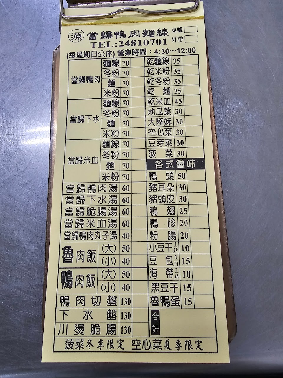 2024最新在地推薦餐廳的菜單_源當歸鴨肉麵線的菜單、圖片