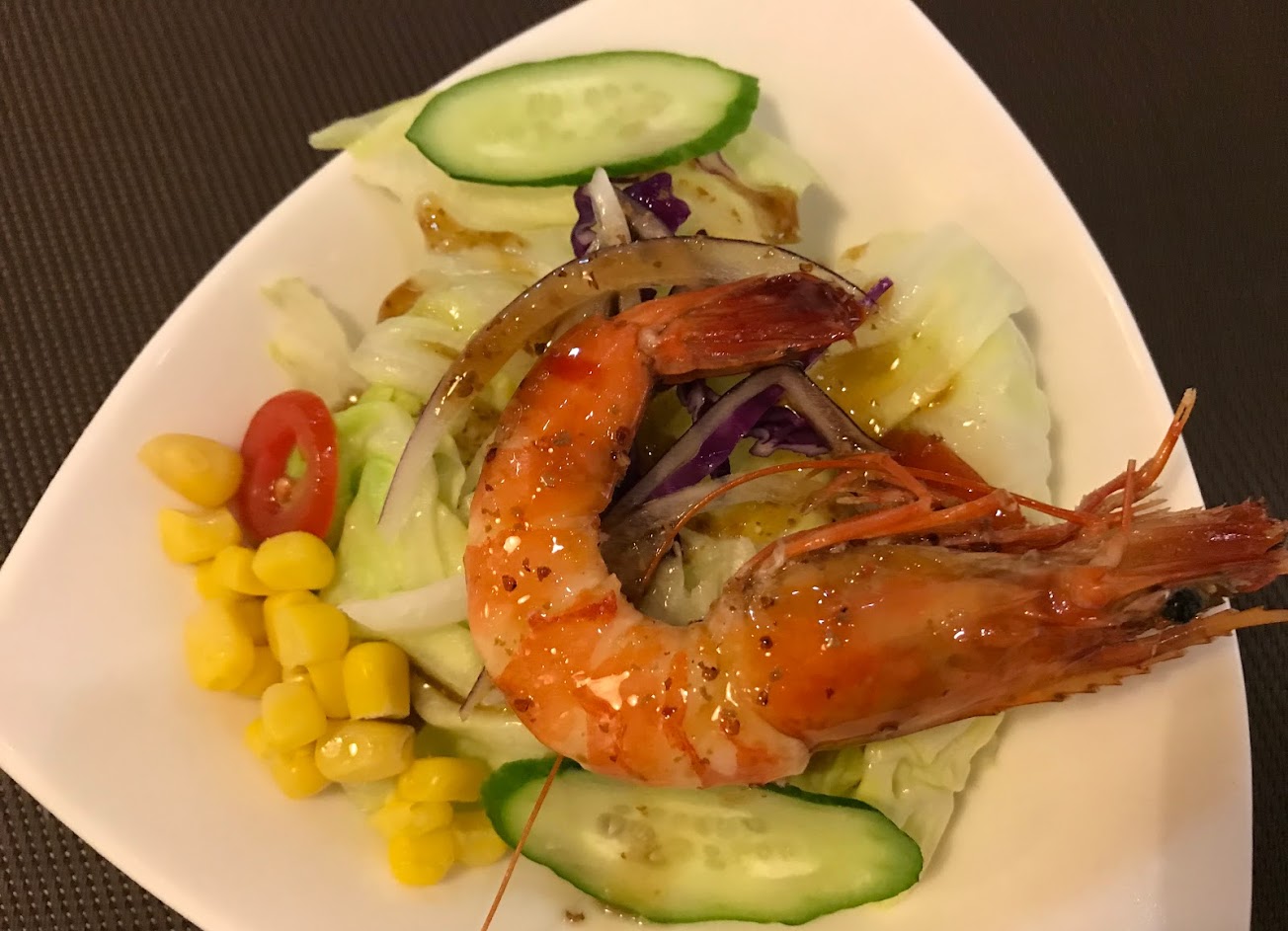 是說最近開胃沙拉上面有蝦蝦欸。