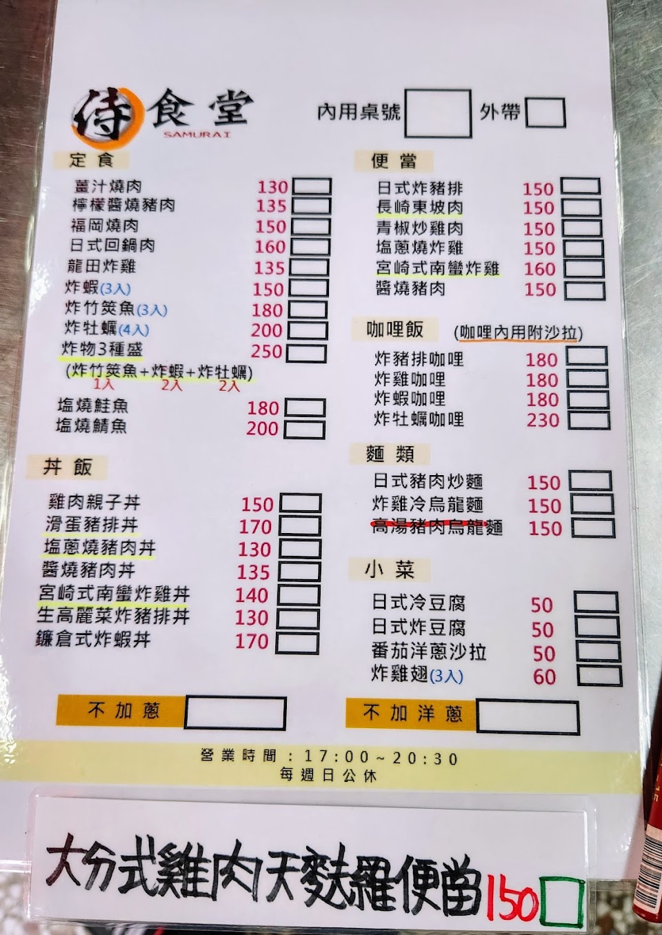 2024最新在地推薦餐廳的菜單_侍Samurai食堂的菜單、圖片