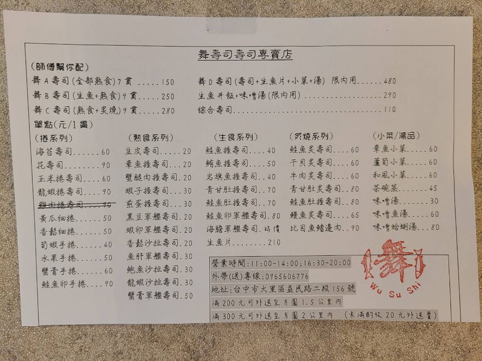 老闆超好超可愛(ʘᴗʘ✿)第一次去吃就直接愛上的好店(壽司就要舞壽司?),服務很周到也很貼心,內用會在等待過程中給茶,還會跟客人哈拉哈哈哈,接近飯後還會附上水果?,餐點每一樣都很好吃讓人驚艷❤️❤️❤️不論是內用還是外帶,品質都一級棒!用錢支持好店,推推 …