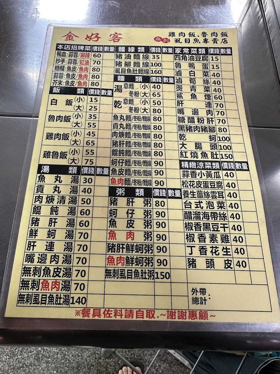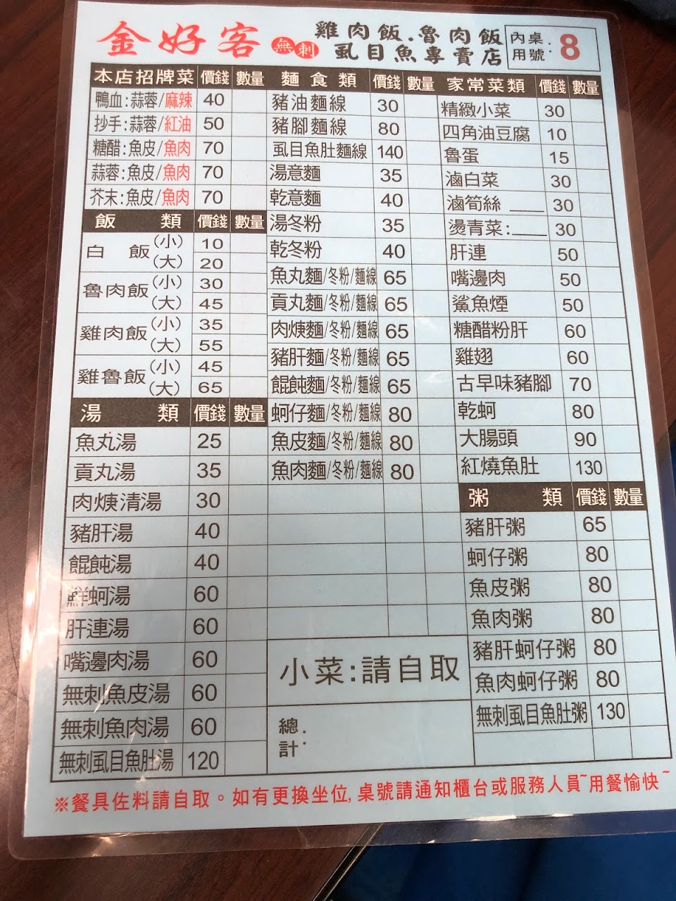 這樣就算了結帳時叫我們拿菜單自己看自己算 整個感覺就很差