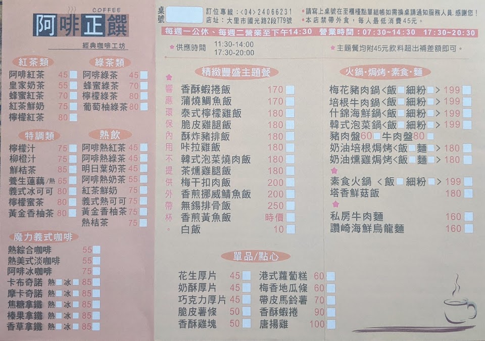 2024最新在地推薦餐廳的菜單_阿啡正饌咖啡工坊的菜單、圖片