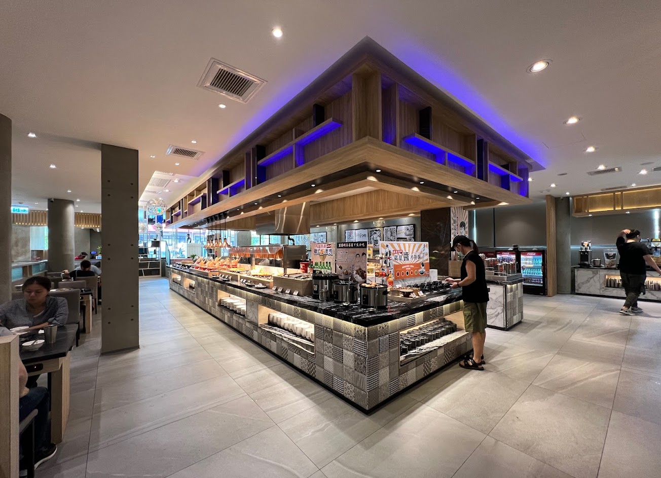 店裡非常明亮清潔 位置之間也是非常寬敞舒適 有機器人會帶位 以及一桌一桌收垃圾 這是我在店裡看過最多笑容的服務人員 (如果多收100,可以看到熱情的服務生,我會很樂意,相信生意會更好.) 食物中規中矩 但勝在花樣眾多 除了火鍋料外 熟食有很多花樣 也有pizza 飲料有小孩愛喝的養樂多,果汁等等 (該有的都有,還比預期多機台) 有很多飯後的甜點跟冰品 (有diy的霜淇淋跟雪糕冰棒等) 肉品也有現切的三種肉品 海鮮我只吃蛤蠣,其他的我個人不吃 所以不評論 總之一切吃起來都算ok 而且火鍋馬力很大 滾起來相當快。
