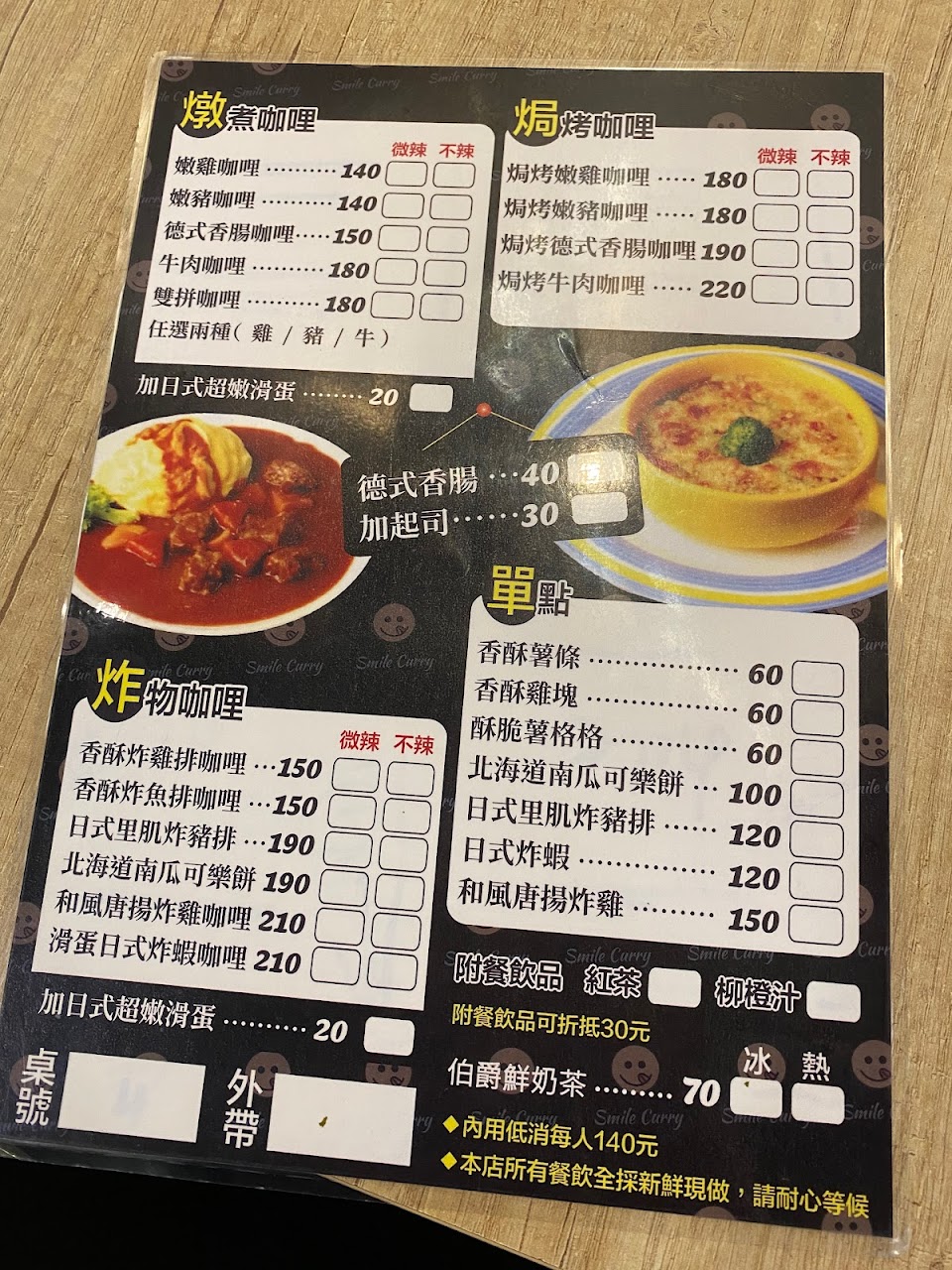 2024最新在地推薦餐廳的菜單_微笑咖哩-太平中山店的菜單、圖片