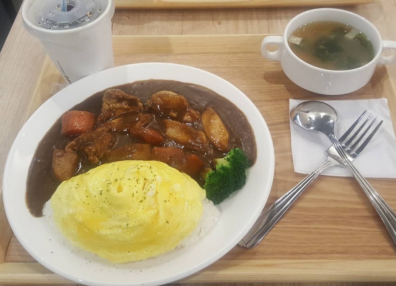 咖哩味道濃鬱好吃,而且一個套餐有飯有湯有飲料也太划算,會持續光顧喔~