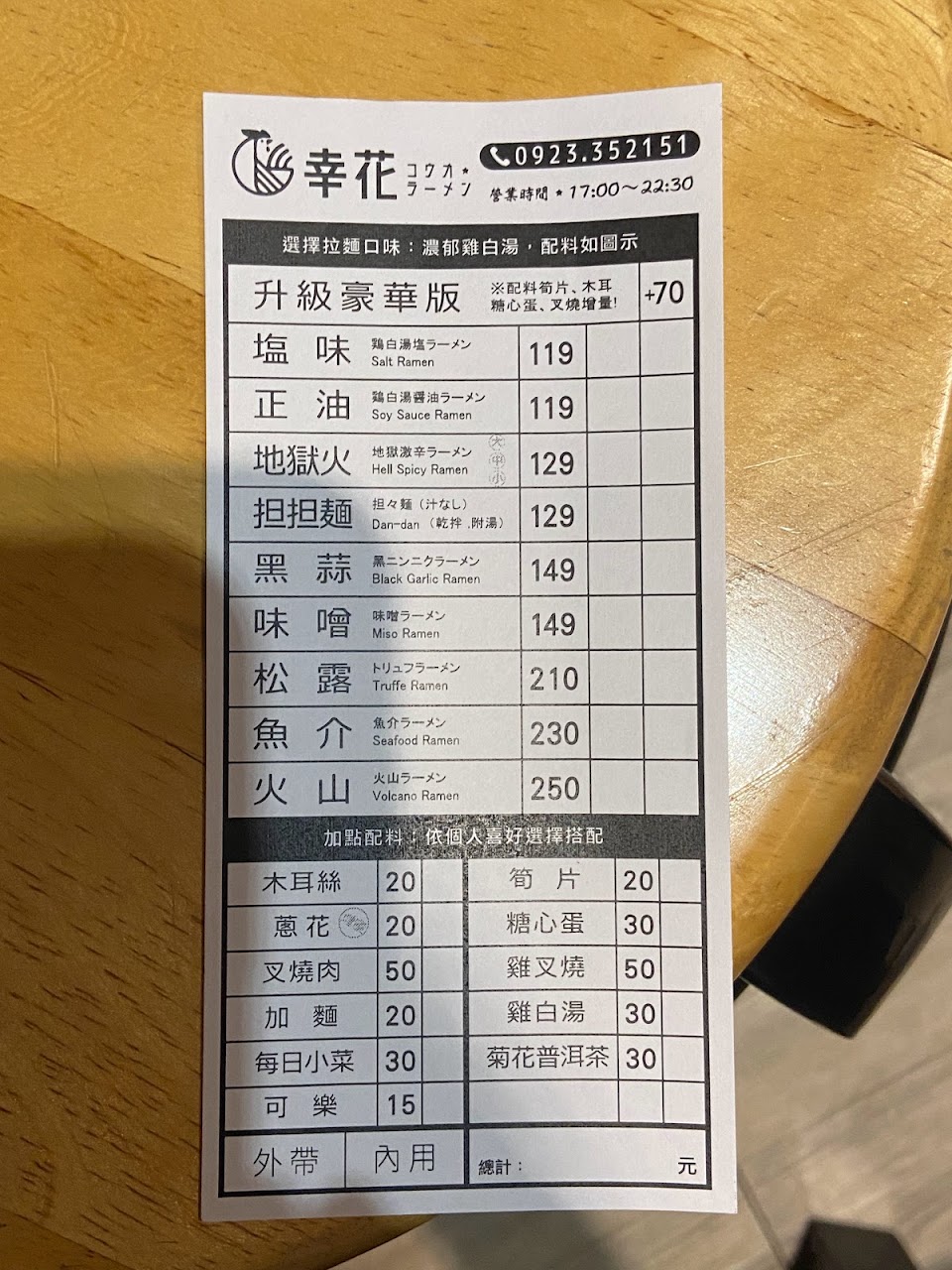 正油拉麵+70豪華餐