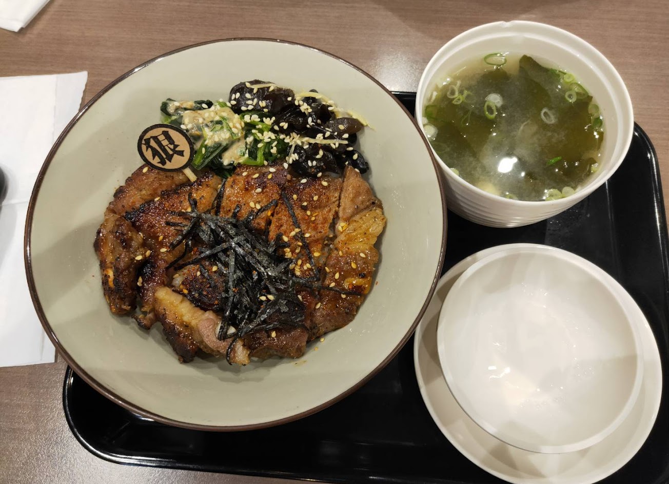 牛肉丼,骰子牛都不錯,加泡菜會更好吃,炸豆腐必點,炸豬排就稍弱了,味噌湯有水準。