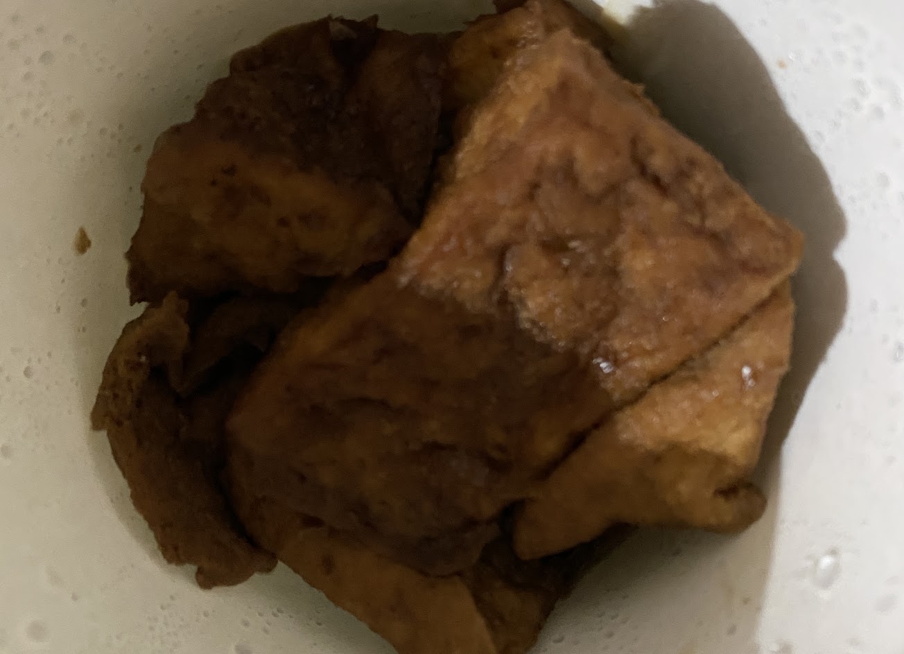 滷豆腐有7顆三角油豆腐,上桌有再淋肉燥,這滷得很入味,吃起來外酥內多汁。