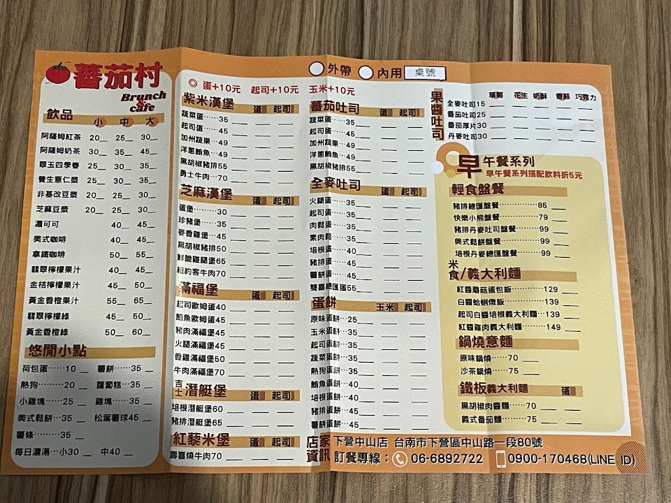 2024最新在地推薦餐廳的菜單_蕃茄村Brunch & Cafe輕食咖啡館 – 下營中山店的菜單、圖片