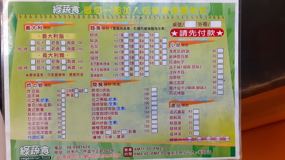 2024最新在地推薦餐廳的菜單_綠蔬食的菜單、圖片
