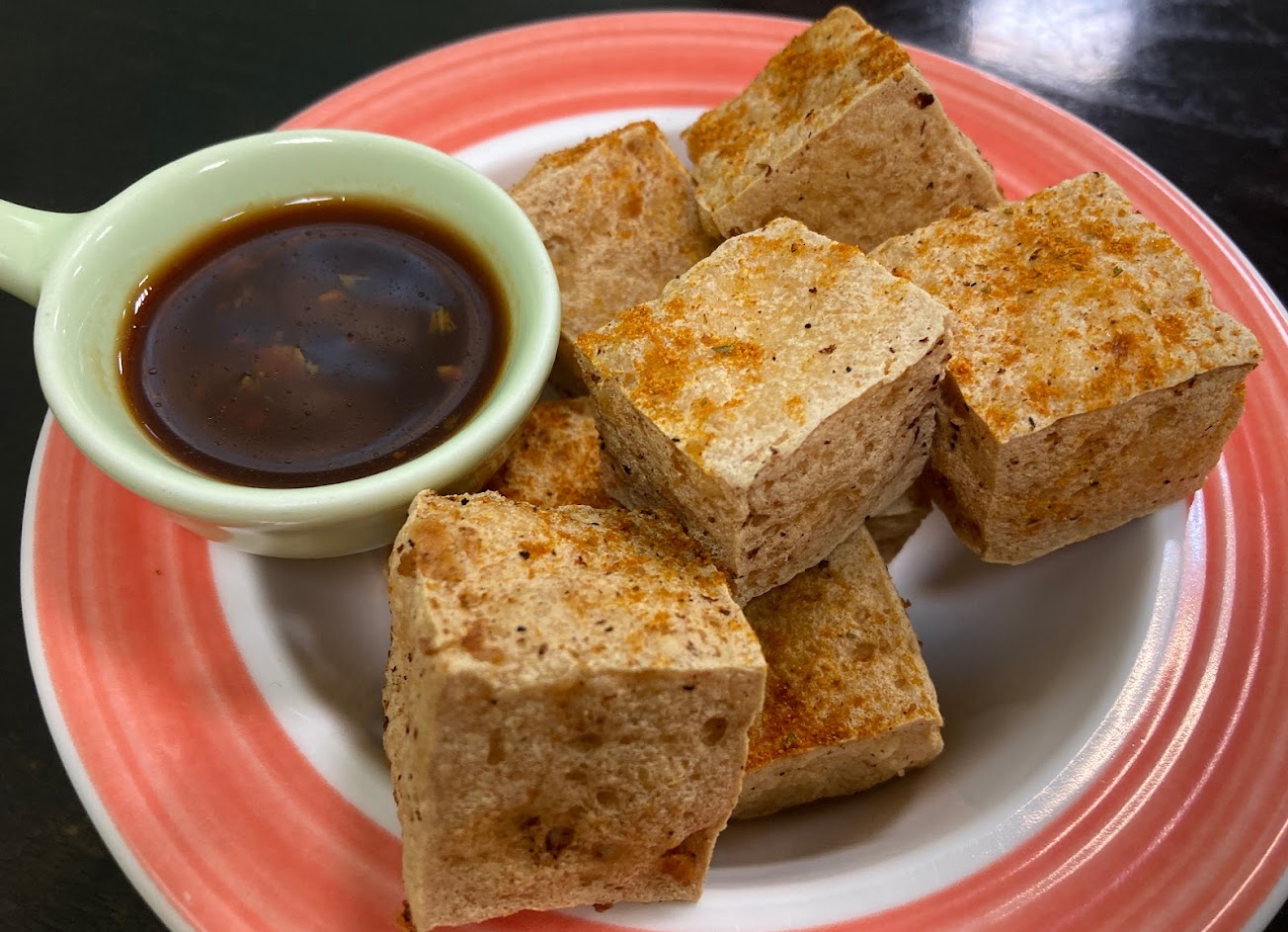 推推五味醬炸豆腐,吃起來很像麥當勞的糖醋醬,辣味蜜汁豆乾調味吃起來很過癮!比較不推杏菇南洋醬排,不知道為何是炸的但吃起來像涼拌的?裡面外面都好冷(一上桌就是),店裡環境蠻舒服也乾淨。