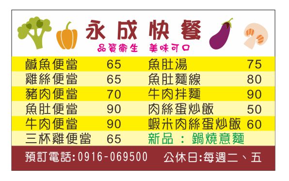 2024最新在地推薦餐廳的菜單_永成快餐店的菜單、圖片