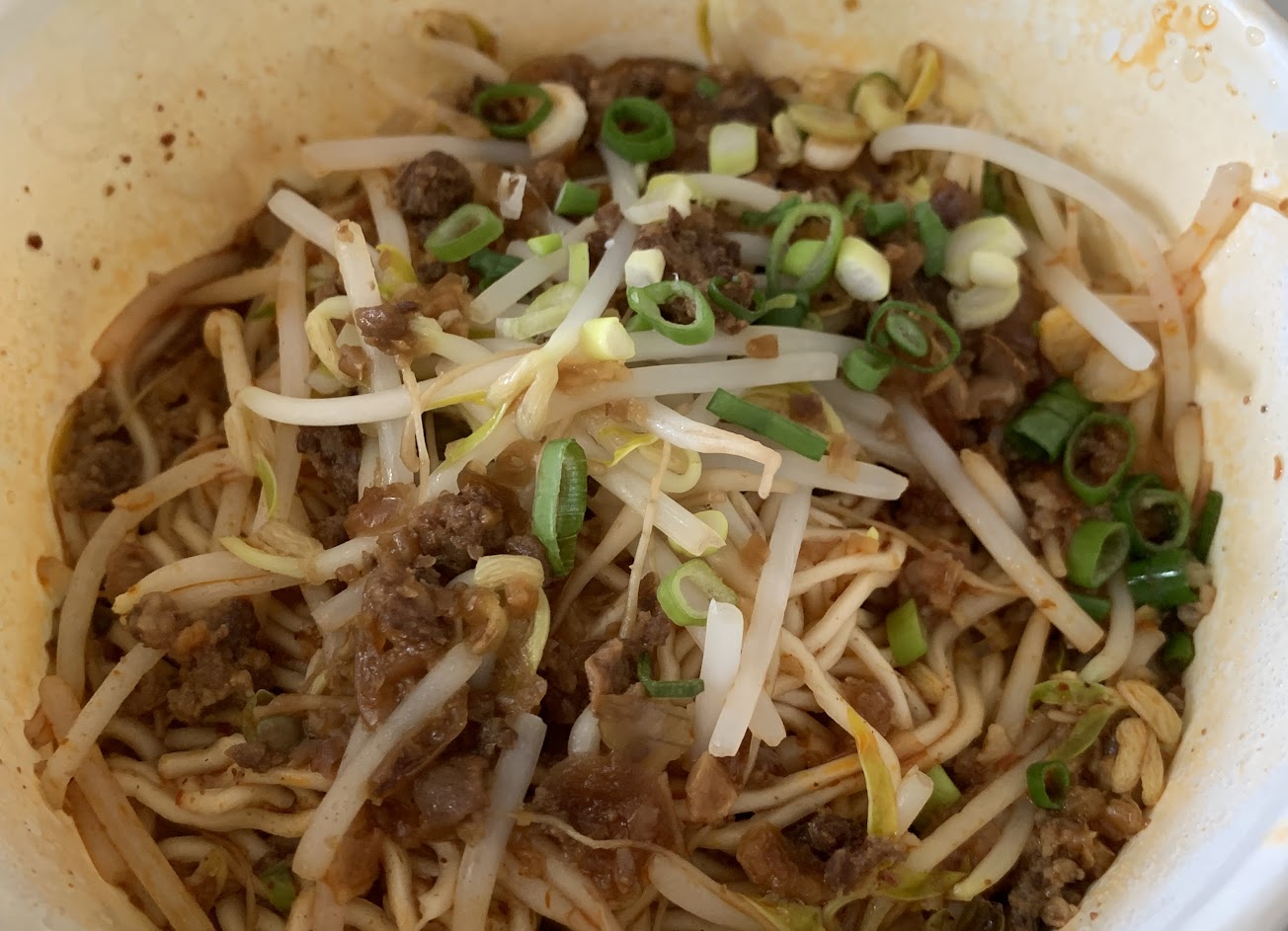 麻辣乾麵是麻辣火鍋的醬料,很香也不鹹。麻醬乾麵的麻醬不是重鹹的味道,重點是上面的肉燥很香不油。餛飩湯的湯頭是大骨熬的感覺,很天然的甘甜,連餛飩都好吃。鍋燒意麵的菜很多,有肉有蛋還超大碗,cp值很高。